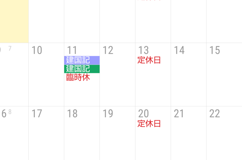 2月の休業のお知らせ